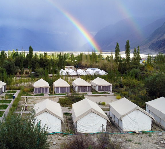 Nubra Escapes Luxury Camps is nestled in the heart of Hunder village of beautiful Nubra valley. We offer top luxury tents with attached bathrooms where we facilitate hot and cold shower 24x7. The solitude of the camp makes your stay relaxing and comfortable with the 5 star hospitality of our friendly staff at your service anytime.